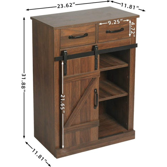 Coewske 11.8 inch Wood Storage Cabinet with Sliding Barn Door Kitchen Sideboard Dark Brown