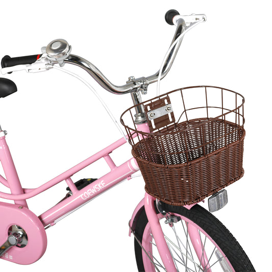 COEWSKE 20 Inch Kids Bike Fantasy-Style Children Leisure Bicycle with Basket Kickstand Included Fit for 6-9 Years Old Or 49-57 Inch Kids, Pink