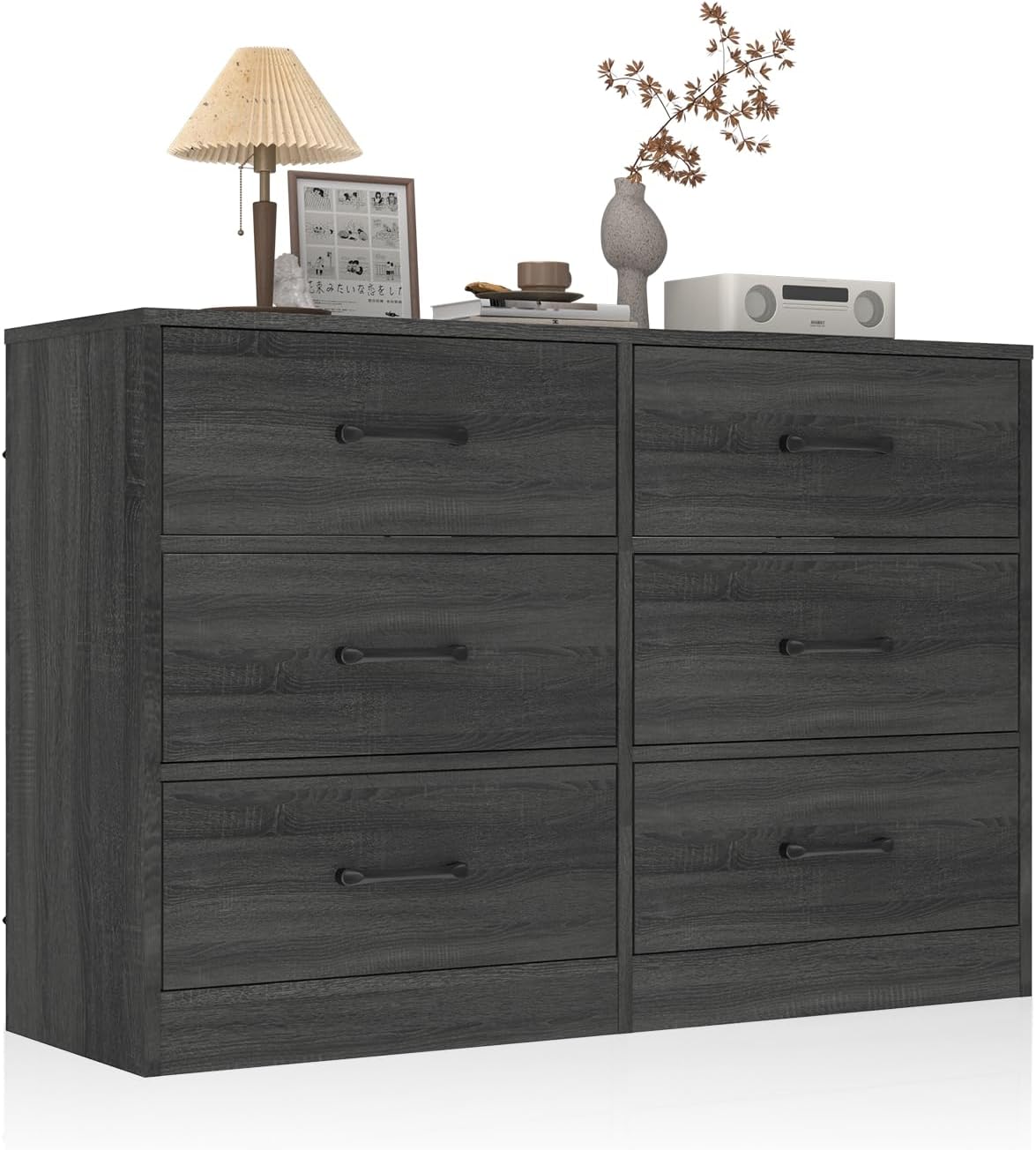 This 40-inch wide dresser is the perfect solution for all your storage needs. The black finish adds a modern and versatile touch to any room decor. With six spacious fabric drawers, you'll have plenty of storage space for your clothing, accessories, and more. The dresser's wide design provides a generous surface area for displaying decor items or even placing a TV. Made of premium MDF material, this dresser is scratch-resistant, wear-resistant and waterproof for long-time use. Whether you place it in your bedroom or hallway closet, this dresser will not only provide functional storage but also enhance the overall aesthetics of the room. Update your home with this stylish and functional dresser today.