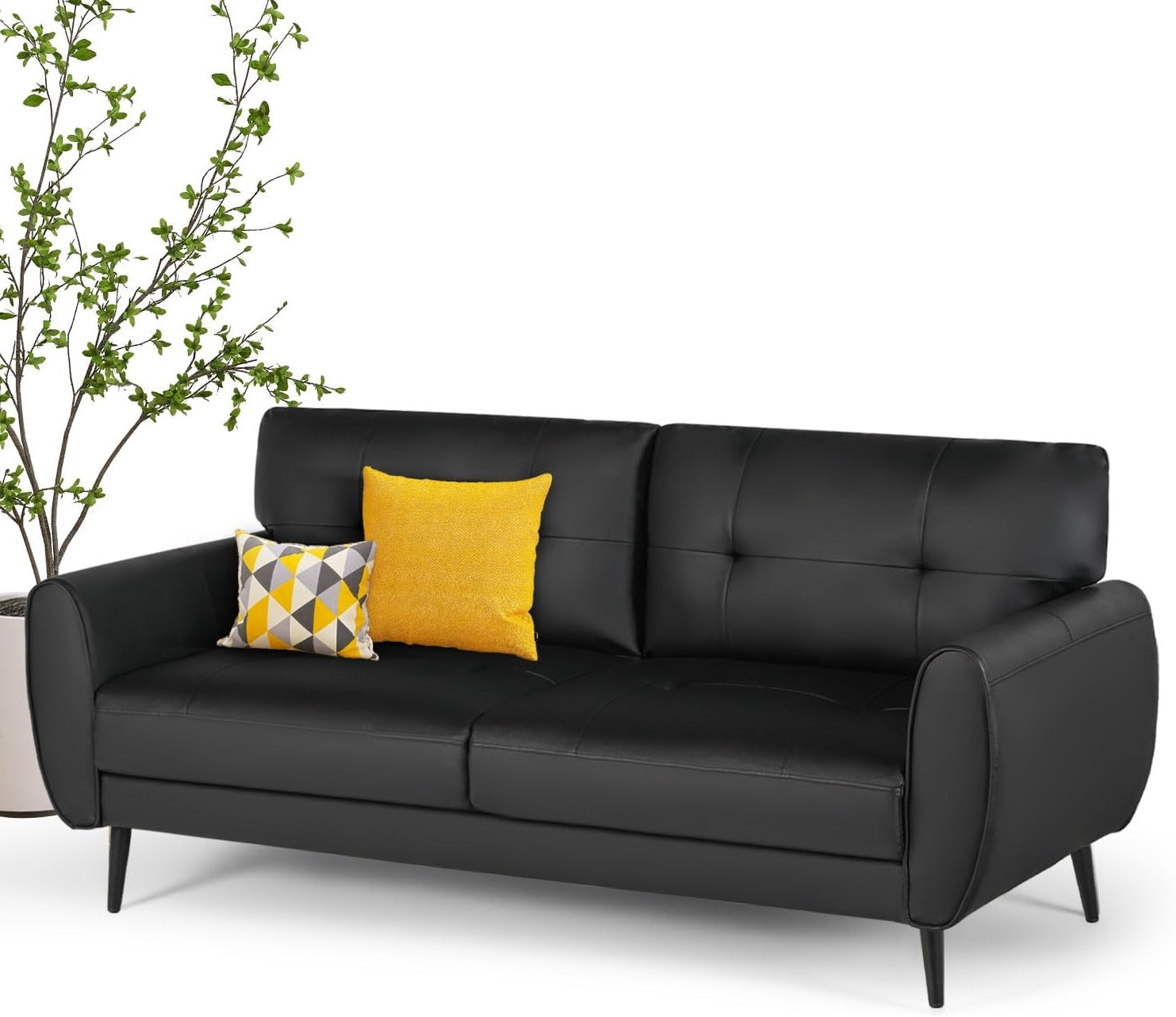 Coewske 60'' Black Leather Sofa Couch Modern Loveseat