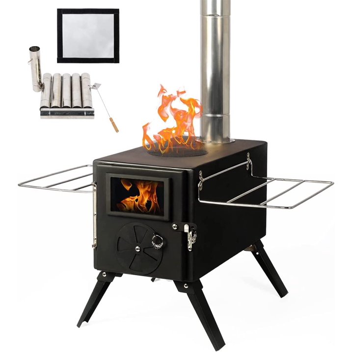 Coewske Camping Stove Portable Steel Hot Tent Stove with Pipe for Outdoor Cooking Trips, Black