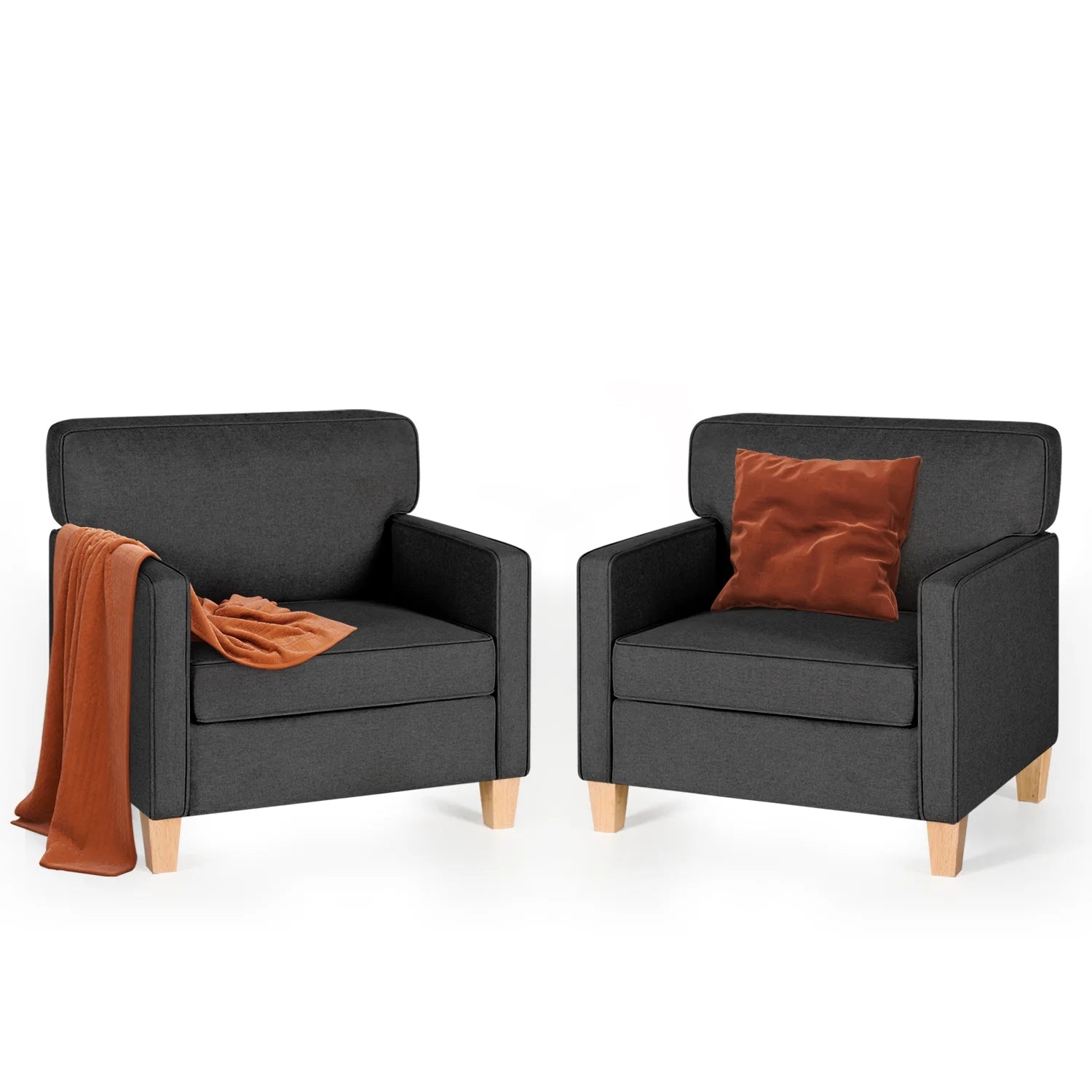 Coewske Comfy Accent Chair Set of 2 with Arms, Oversized Armchair Reading Chairs Single Sofa for Bedroom Living Room, Dark Grey