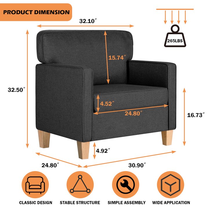 - The accent armchair has an ergonomic back and armrest, a wide back, and armrests of appropriate height, provide you with maximum comfort.