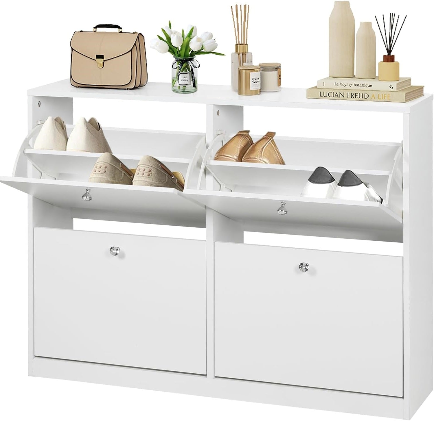 Coewske Entryway Shoe Rack Cabinet Storage Shoe Organizer w/ 2-layer Flip Drawers White