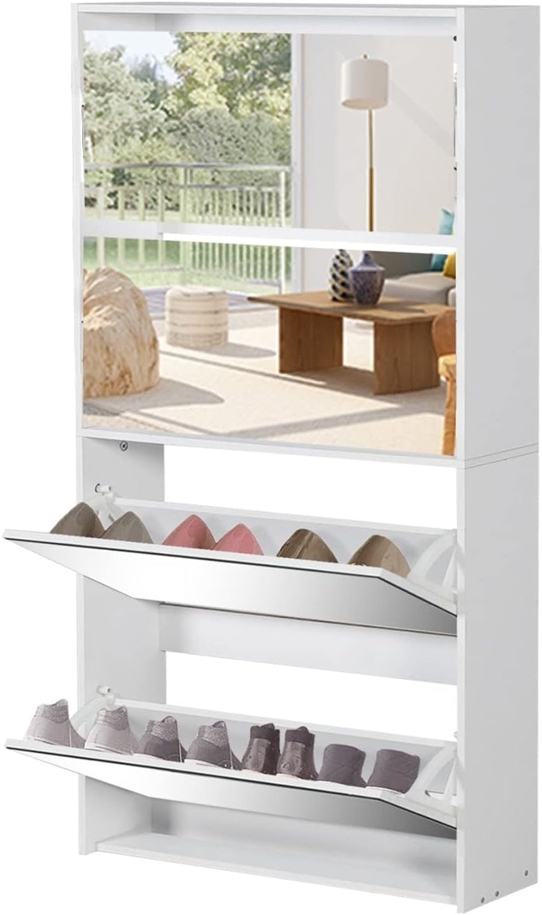 - 4 Flip Mirror Drawers: Our shoe cabinet features 4 doors that serve dual purposes as storage and mirrors, allowing you to effortlessly check your appearance. It's an ideal shoe shelf for preparing yourself for work, study, or important occasions.