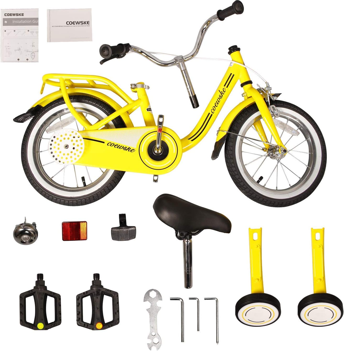 COEWSKE Kid's Bike Steel Frame Children Bicycle 16 Inch with Training Wheel, Yellow