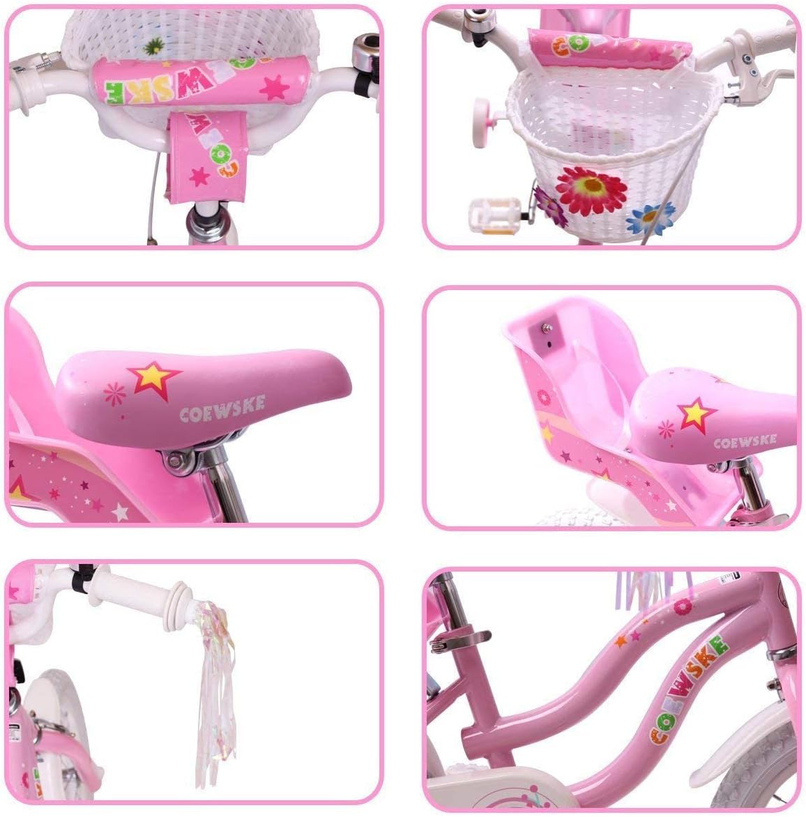 COEWSKE Kid's Bike Steel Frame Children Bicycle Little Princess Style 12 Inch with Training Wheel, Pink