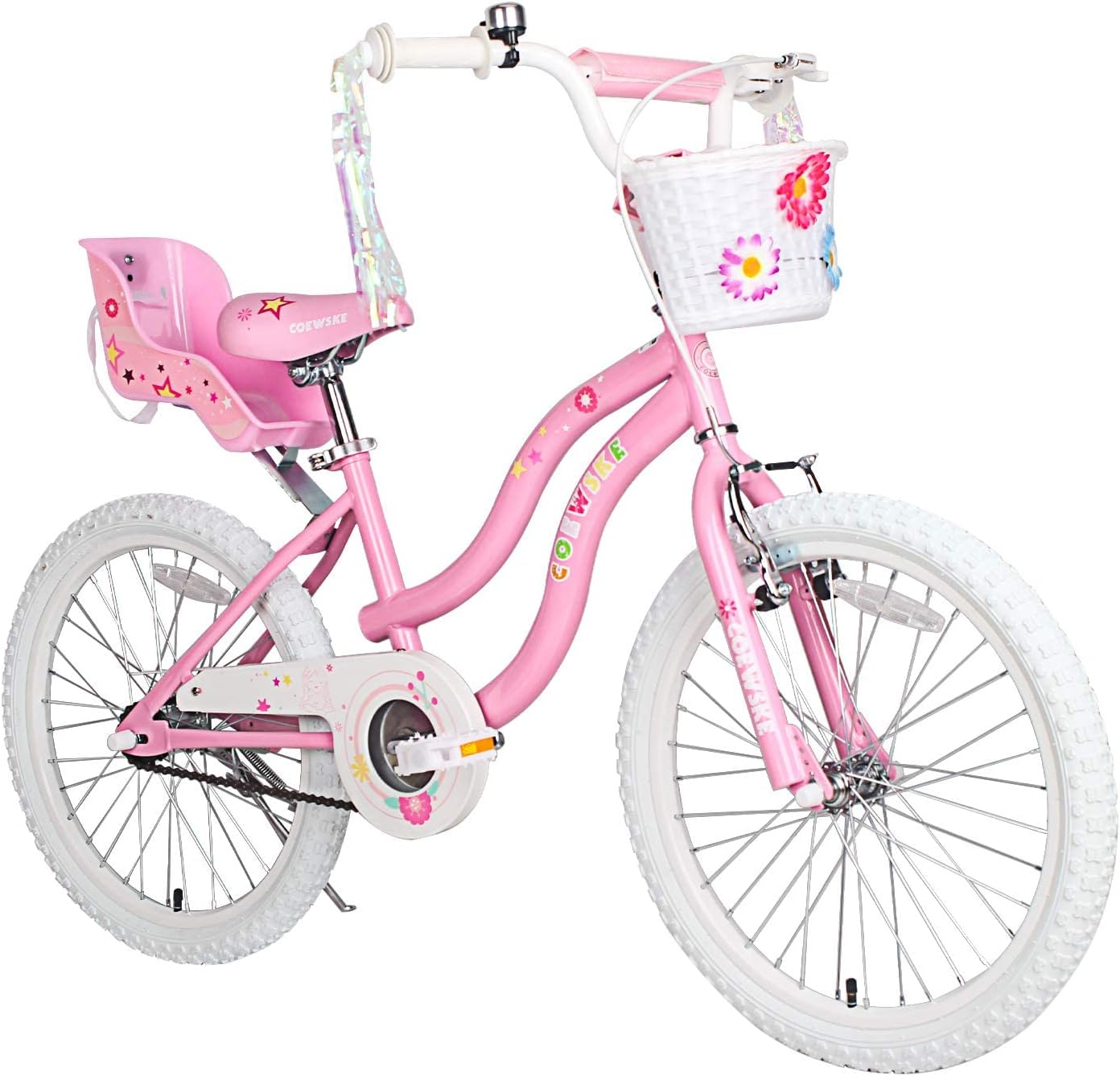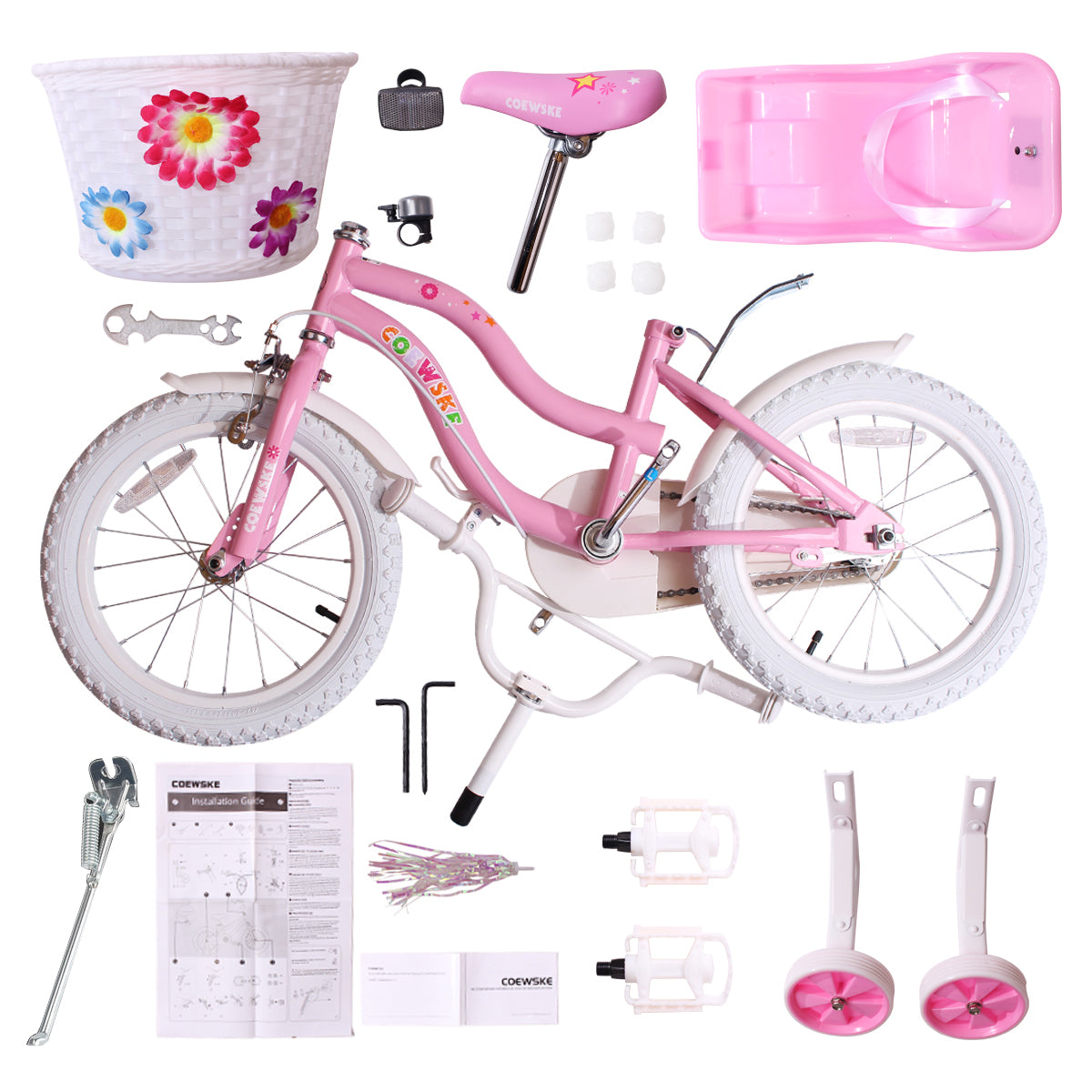 COEWSKE Kid's Bike Steel Frame Children Bicycle Little Princess Style 18 Inch with Training Wheel, Pink
