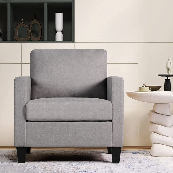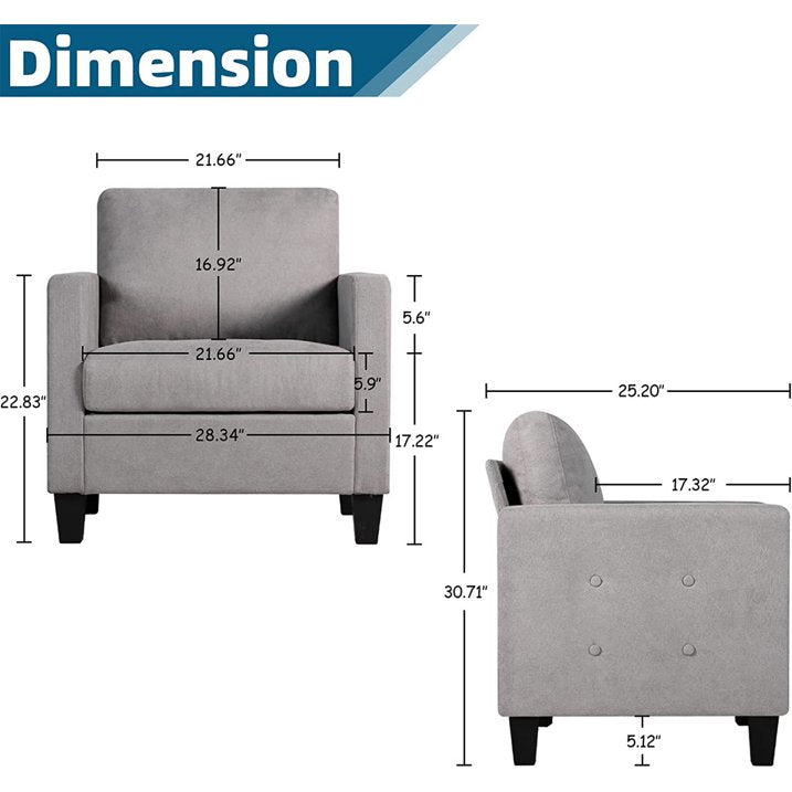 Coewske Mid-Century Accent Arm Chair, Comfy Button Tufted Sofa Chair Bedroom, Office, Light Gray