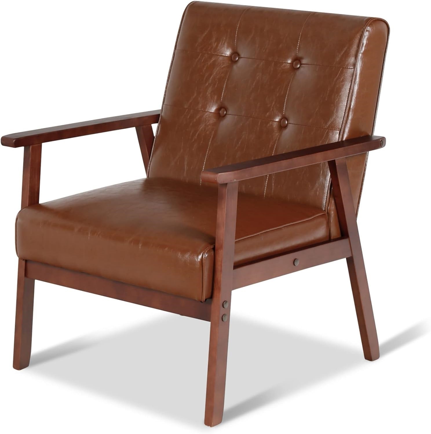 Coewske Mid Century Accent Chair Upholstered Reading Arm Chair w/ Wooden Frame Brown