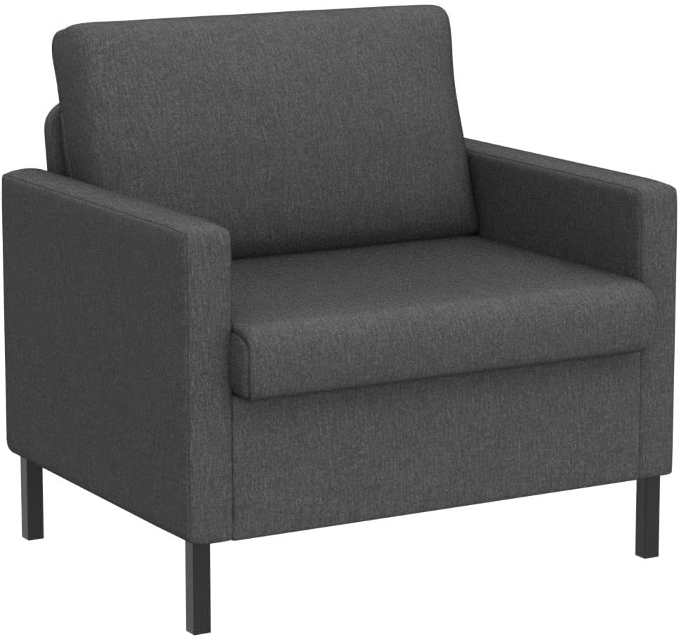 - Premium Materials: Crafted with skin-friendly and breathable fine linen fabric, this living room sofa chair resists pilling and wrinkling. The sturdy black square metal legs ensure stability and durability, preventing rust and peeling paint. The cushion is made of high elasticity sponge and fluffy pearl cotton, providing comfort and support.