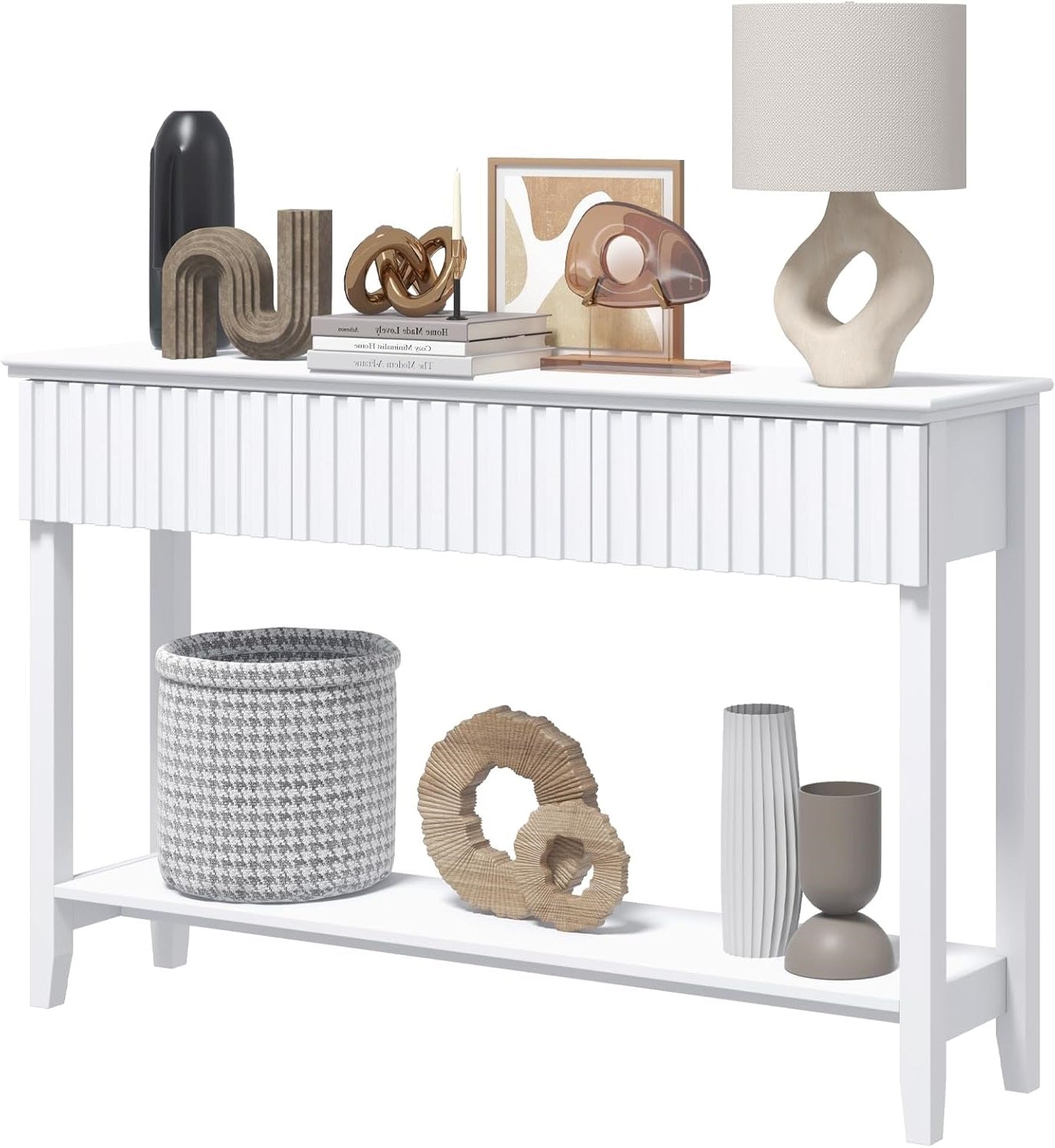 - Refined Appearance & Intricate Drawer Detailing: Elevate your space with the sophisticated design of our entryway table. The three drawers feature a distinctive fluted surface that adds a touch of sophistication and visual interest. The sleek silhouette combined with these high-quality drawer fronts creates a harmonious balance between style and functionality, making it both a practical storage solution and a statement piece of refined taste.