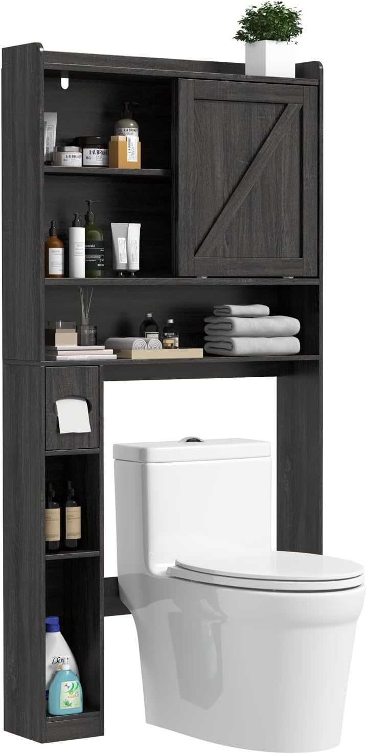 - Sleek & Space-saving Design: Our over toilet storage cabinet combines a hidden compartment with a sliding door and an open space. Not only does it save space, but it also adds a beautiful touch to your bathroom. You can choose from two different colors, making it suitable for various bathroom styles.