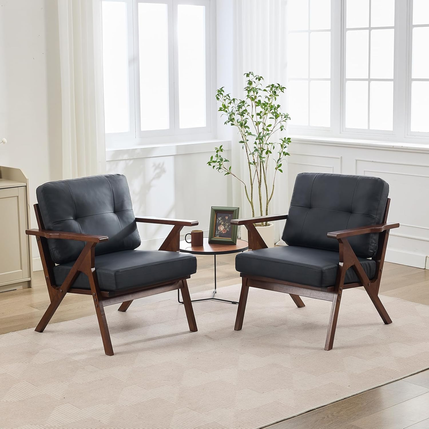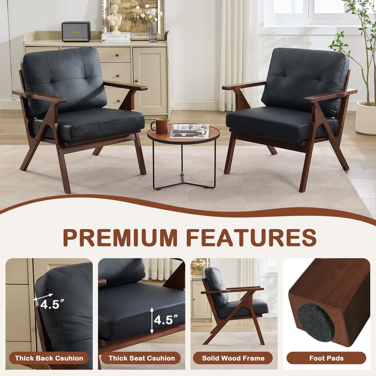 JIASTING Black Leather Accent Chair Set of 2, Mid Century Modern Accent Chair, Office Guest Waiting Room Chairs for Living Room, Bedroom, Wood Frame & Easy Assembly (2)