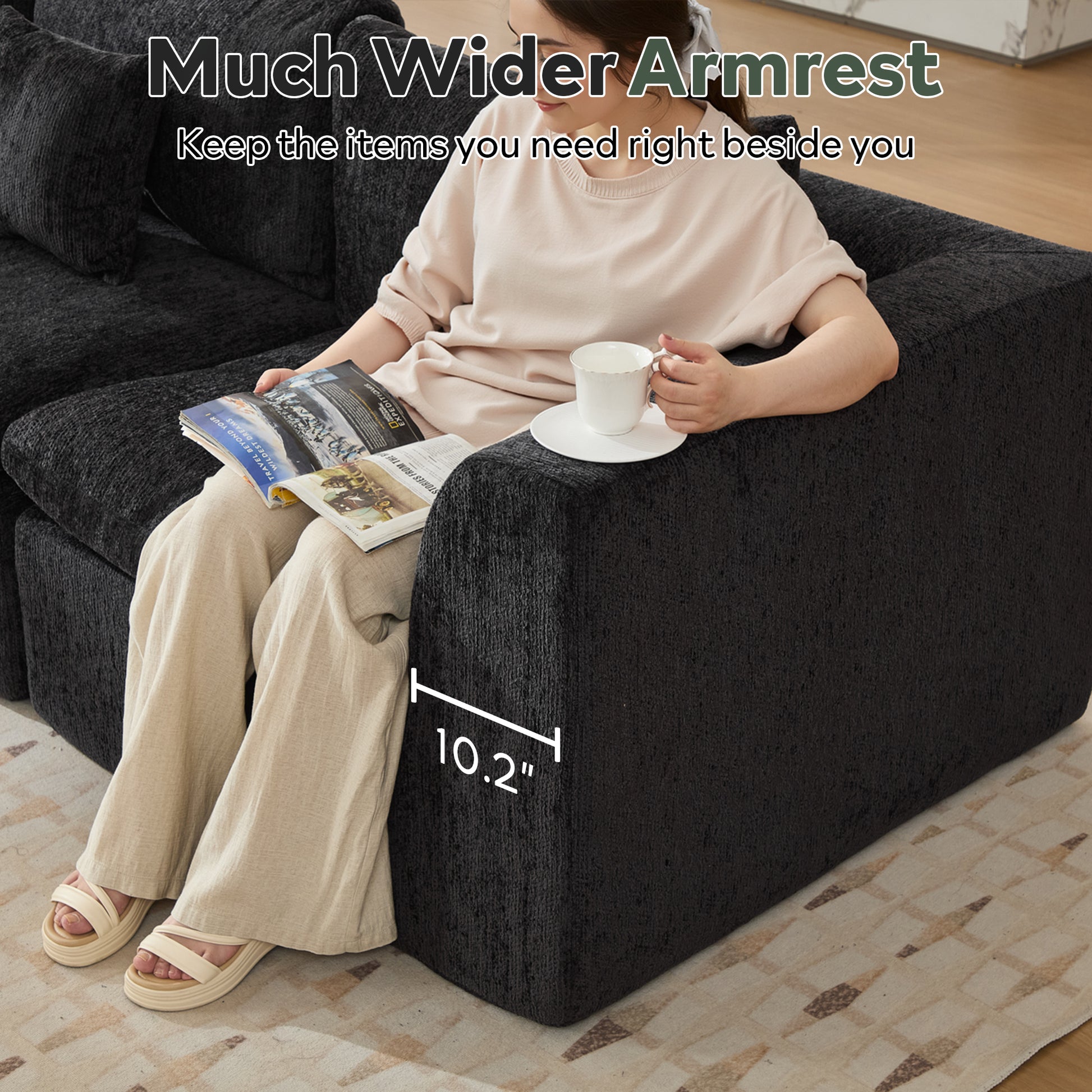 - Built to Last & Easy to Clean: Life happens! Spills, pets, and everyday messes are no problem. The soft, durable chenille Fabric resists wear, and the cushion covers zip off for an easy machine wash, keeping your black boneless couch looking fresh and new.