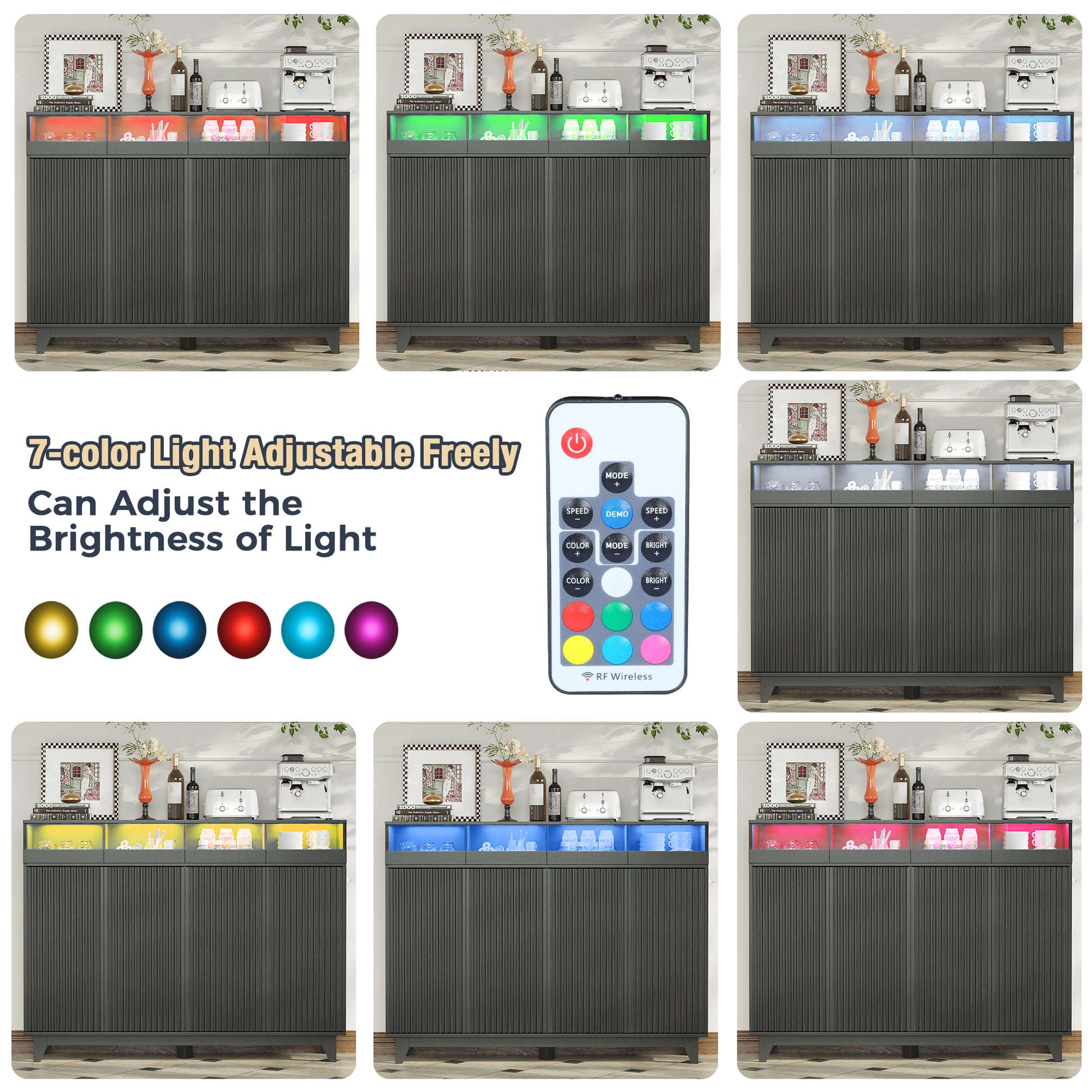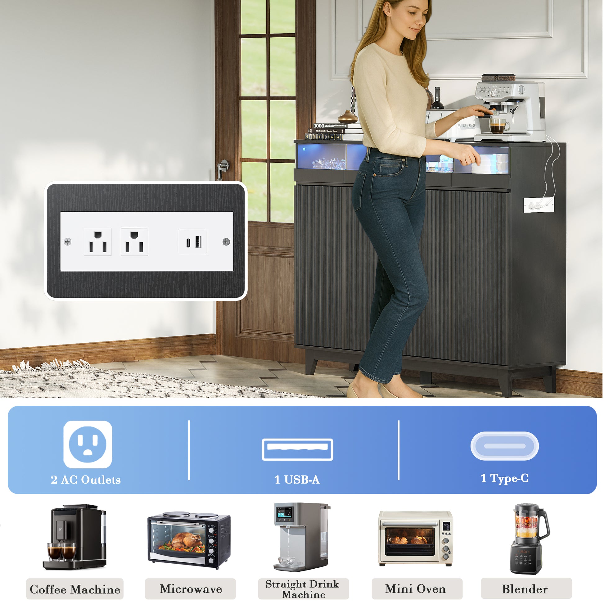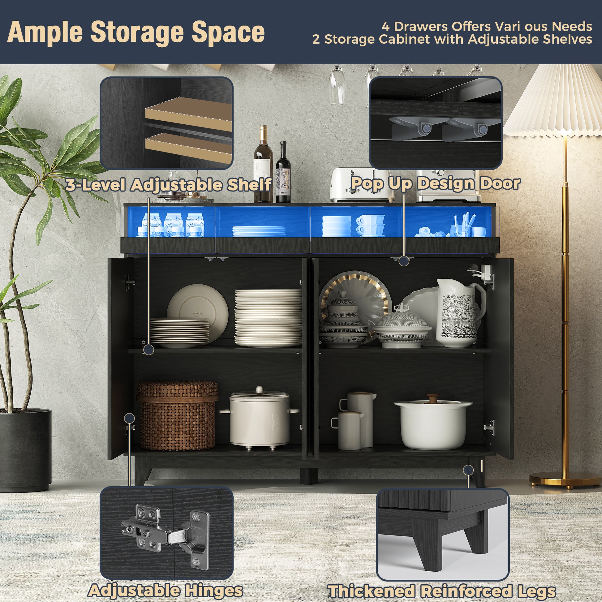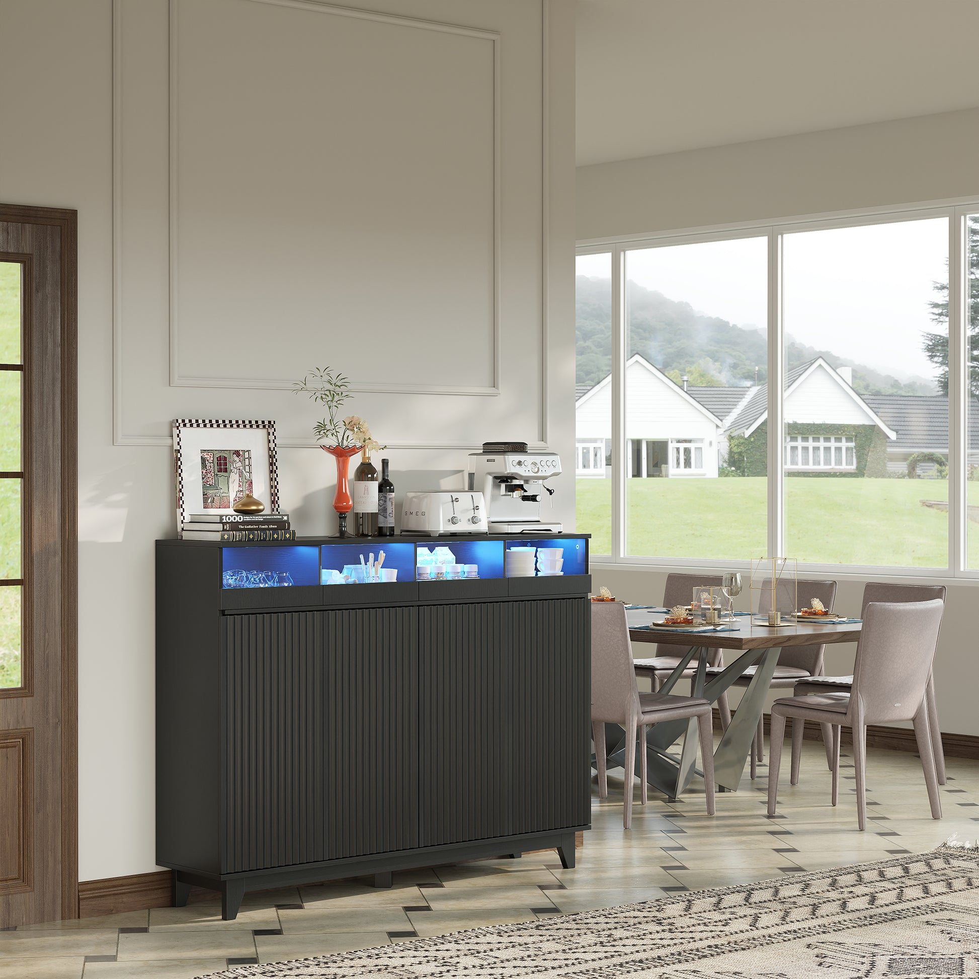 STHOUYN 55" Sideboard Buffet Cabinet with Charging Station LED Lights, Side Board Credenza Storage Cabinet, Modren Kitchen Buffet Table with Drawers, Wood Dining Room Sideboards (Black)