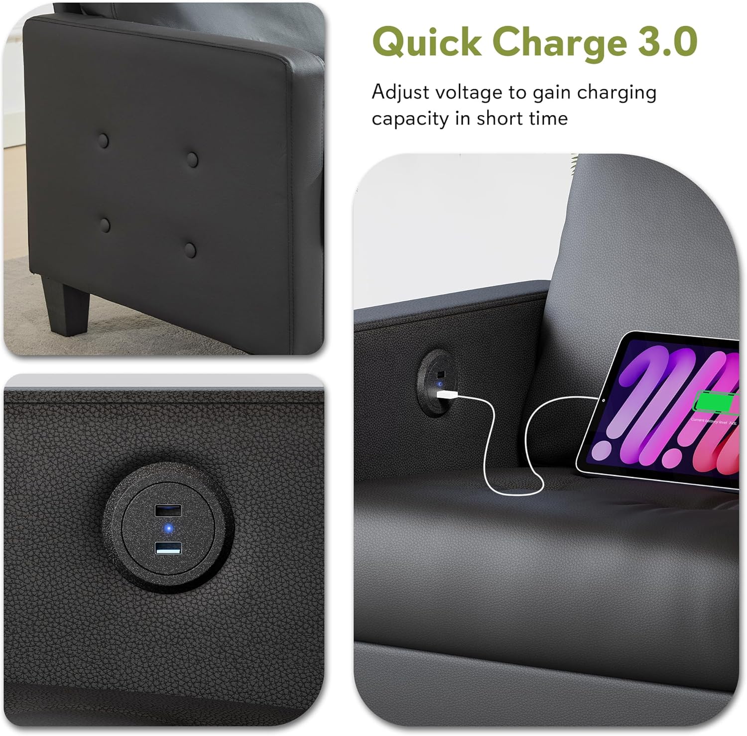 - Ergonomic Comfort with USB Charging: After a long day, you deserve a sofa that supports both your body and your lifestyle. This faux leather couch is built with high-resilience foam cushions and inner coil springs for exceptional comfort and support—whether you’re relaxing with a book or dealing with neck and shoulder strain. The thickened backrest follows ergonomic angles for lasting ease. Plus, the built-in USB ports let you charge two devices at once, so you can watch movies or scroll your phone without worrying about running out of battery.