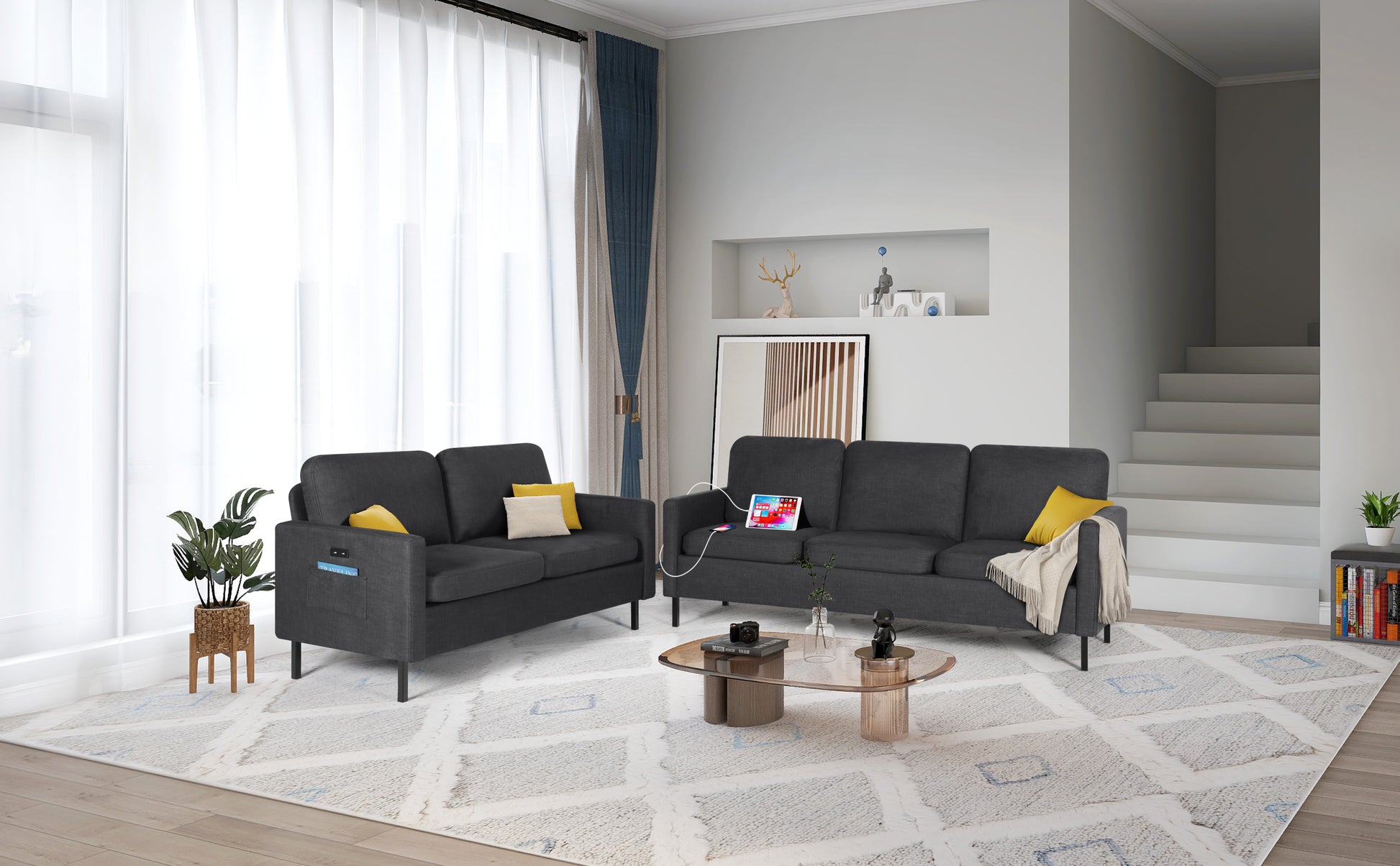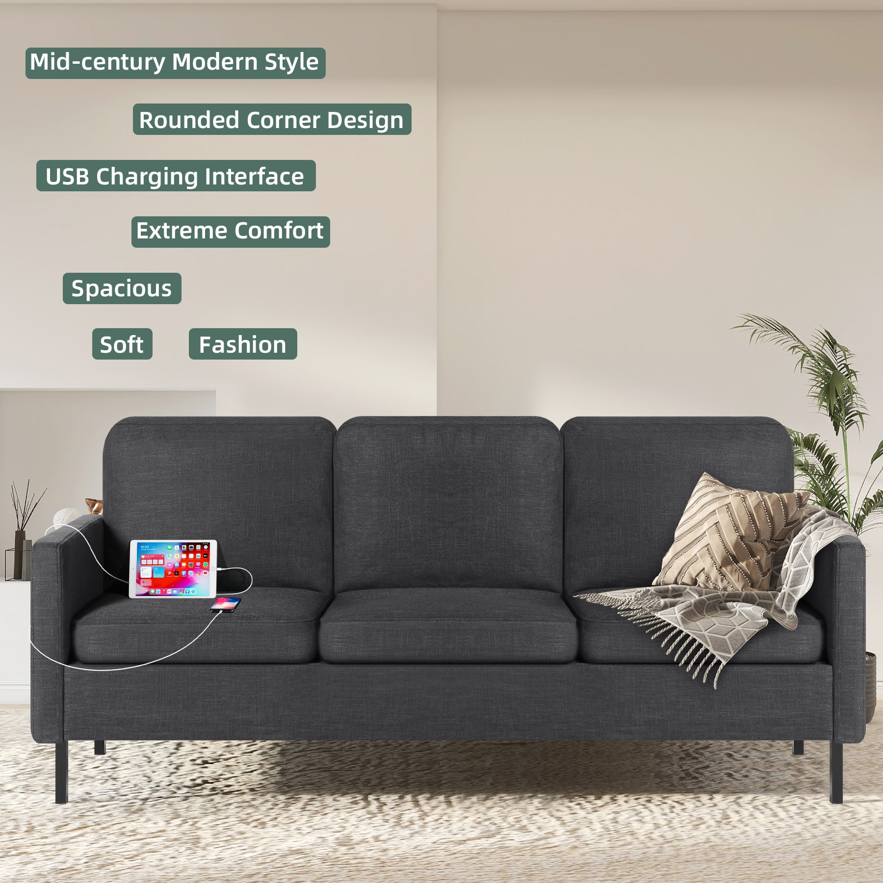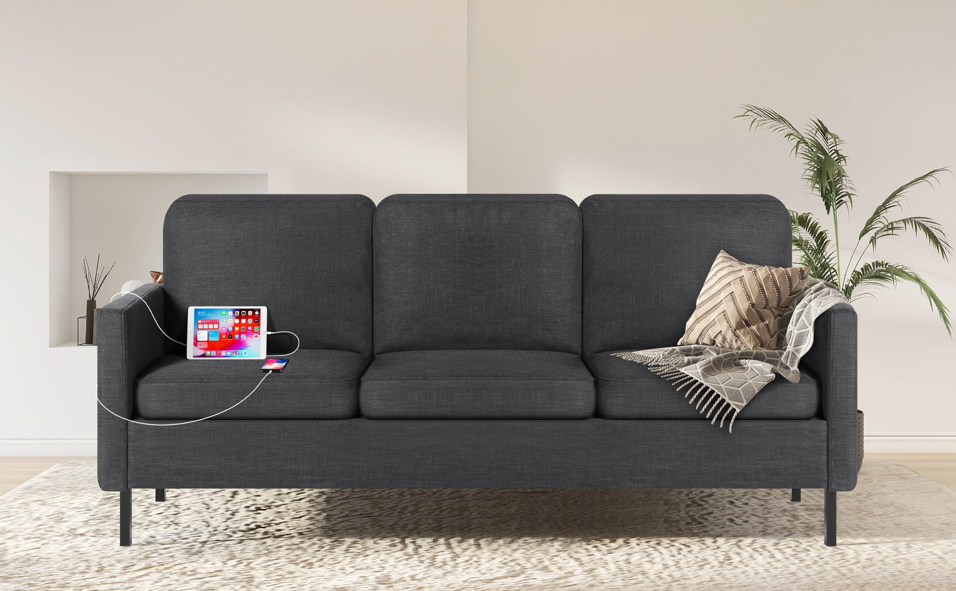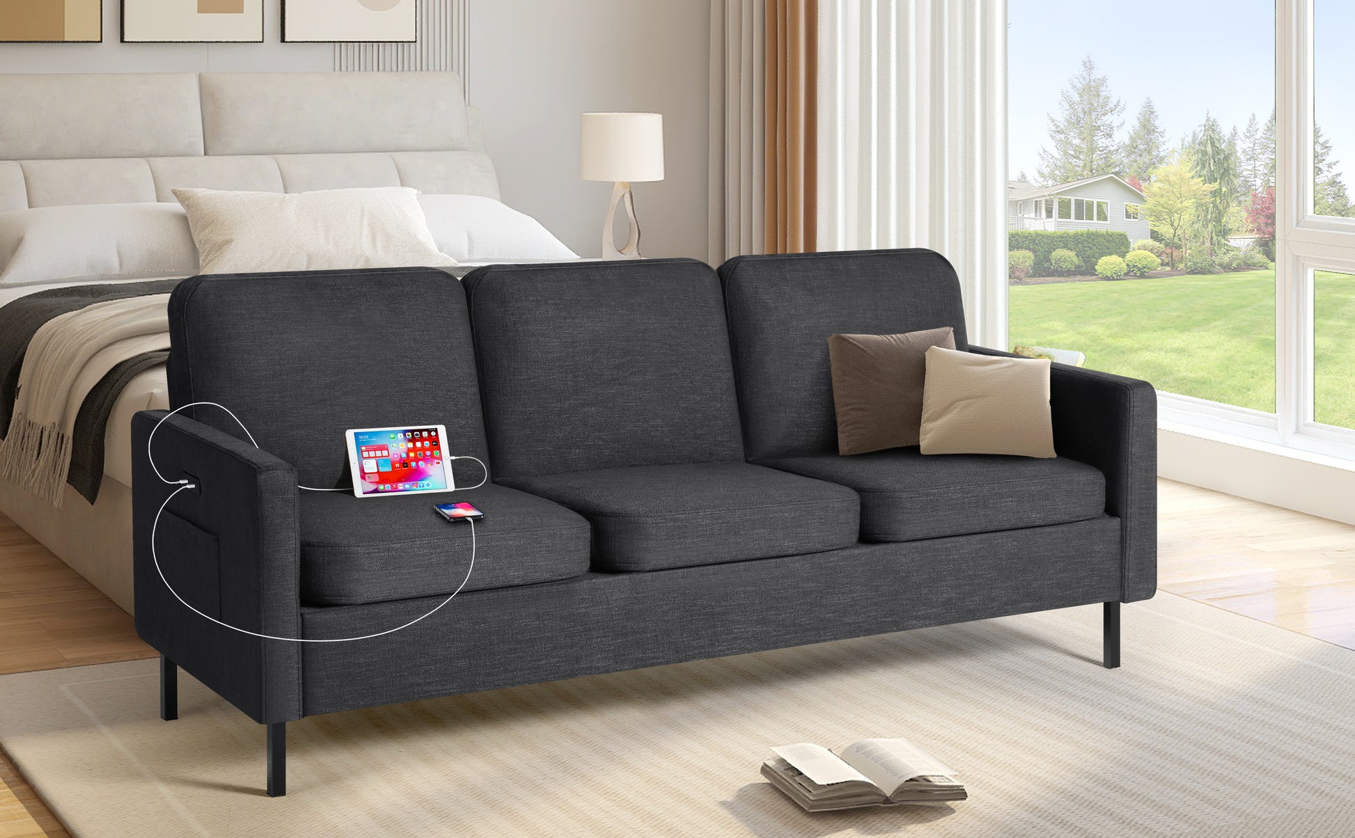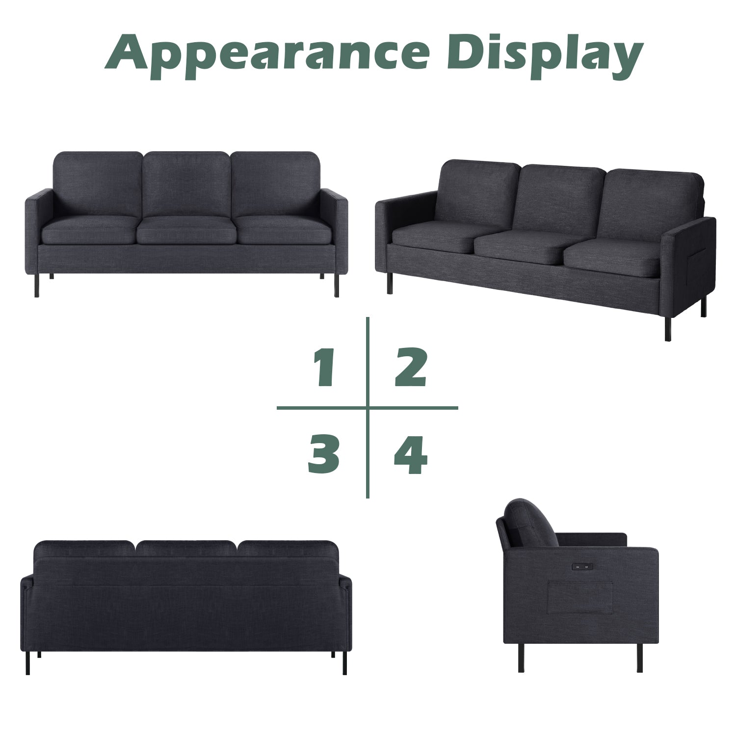 - New Design】We increased 2 USB charging ports on the one side of the armrest, 3 seater couch can provide long-term power so that you can play games and watch videos on grey couch. Pockets on both sides of the couch, convenient to pick up and keep things.