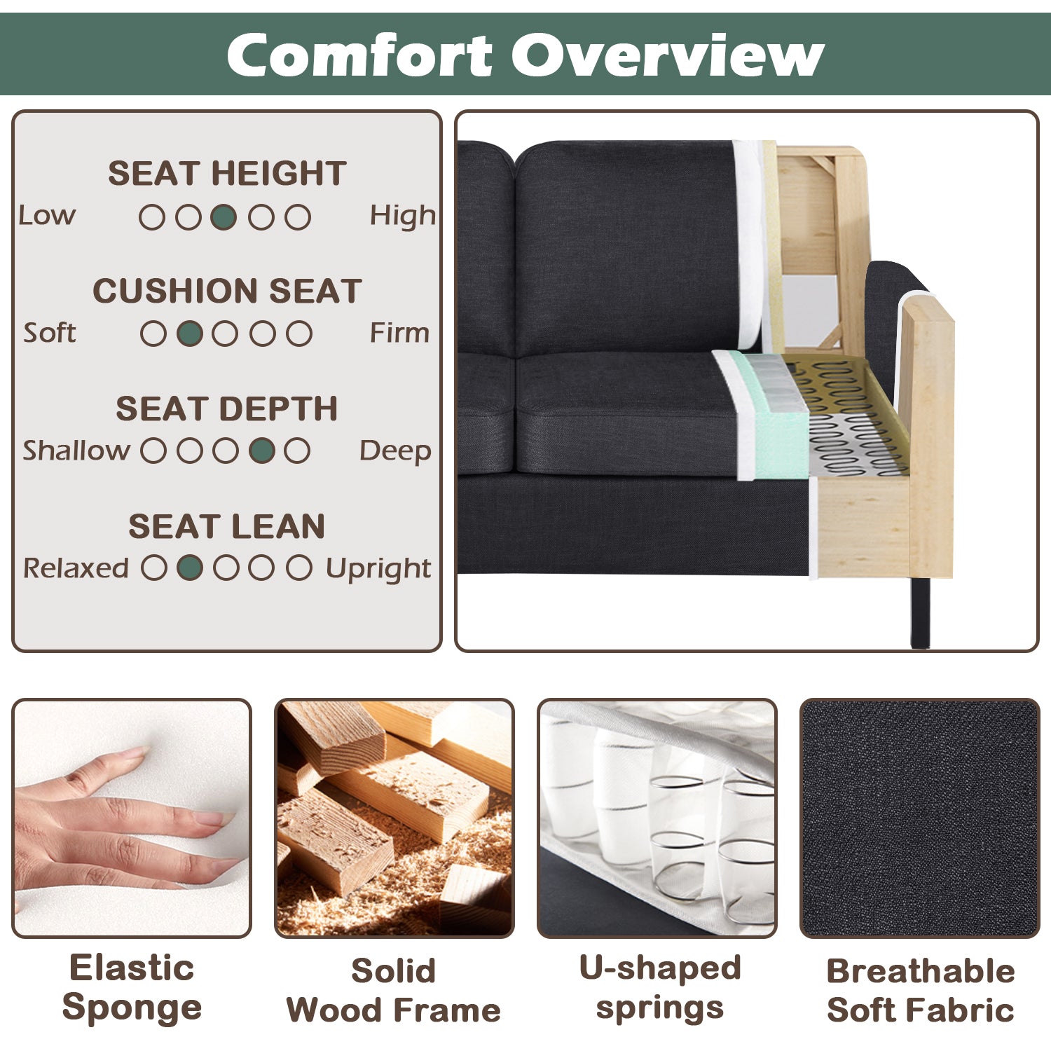 - 【Ergonomic Comfort】Experience cloud-like support with high-resilience foam cushions wrapped in breathable linen fabric. The rounded backrest cradles your spine, while the 18.9" deep seat and 25.6" tall pillows offer full-body relaxation – perfect for movie nights in your living room couch.