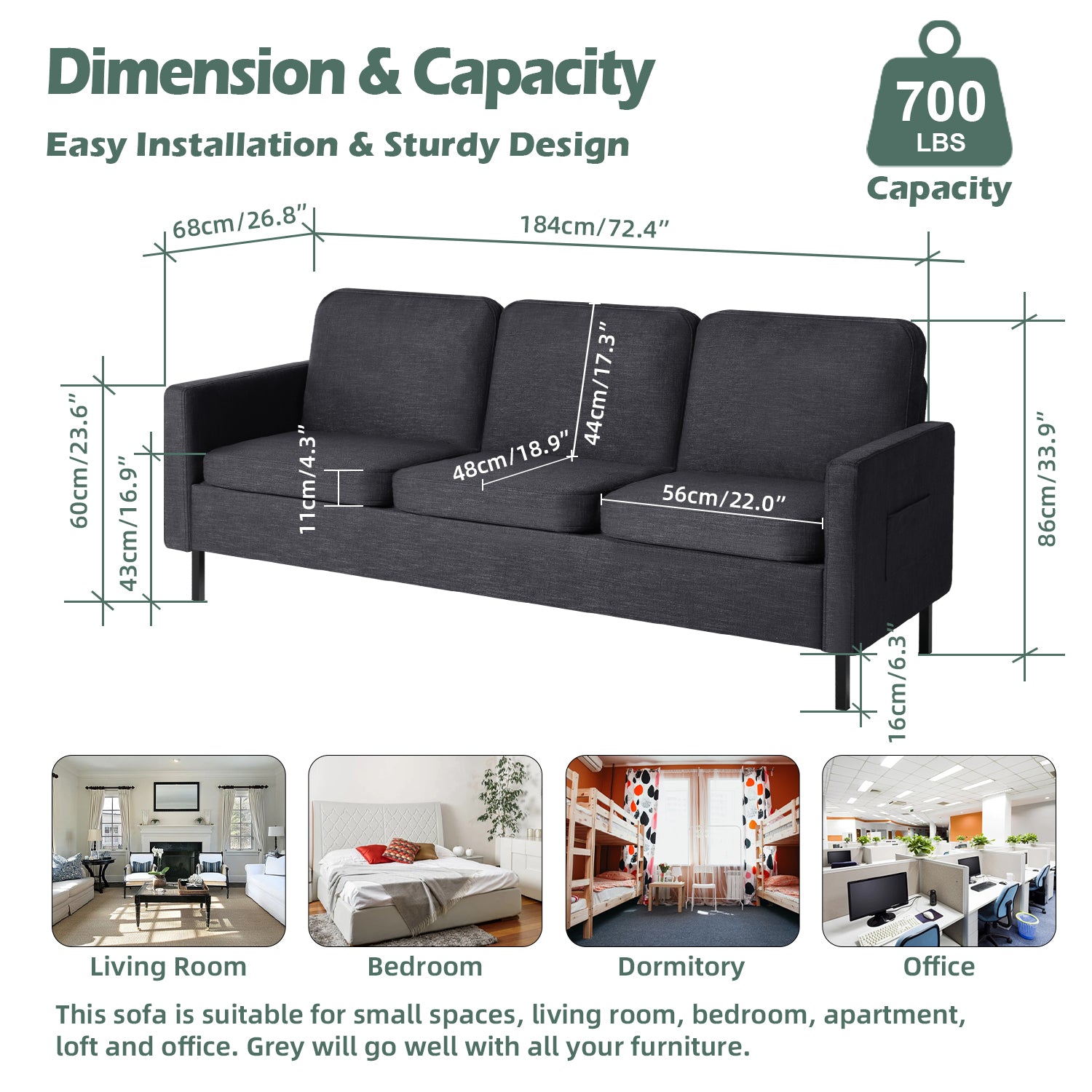 - 【Space-Saving Versatility】This 76" 3 seater couch fits flawlessly in apartments, lofts, offices, or bedrooms. The versatile grey couch complements any decor – from minimalist studios to cozy family dens.