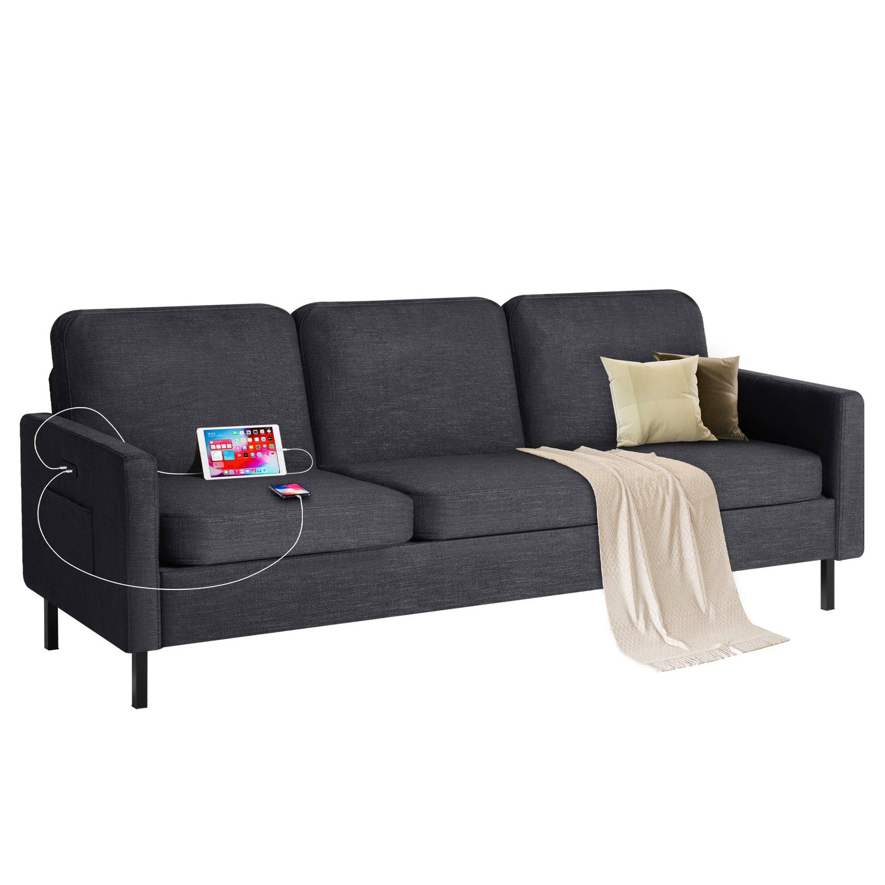 STHOUYN 72" W 3 Seater Couch with 2 USB, Comfy Grey Couch with 2 Pockets, Living Room Sofas with Reinforced Steel Frame, Cheap Sofas for Small Spaces, Dorm, Bedroom
