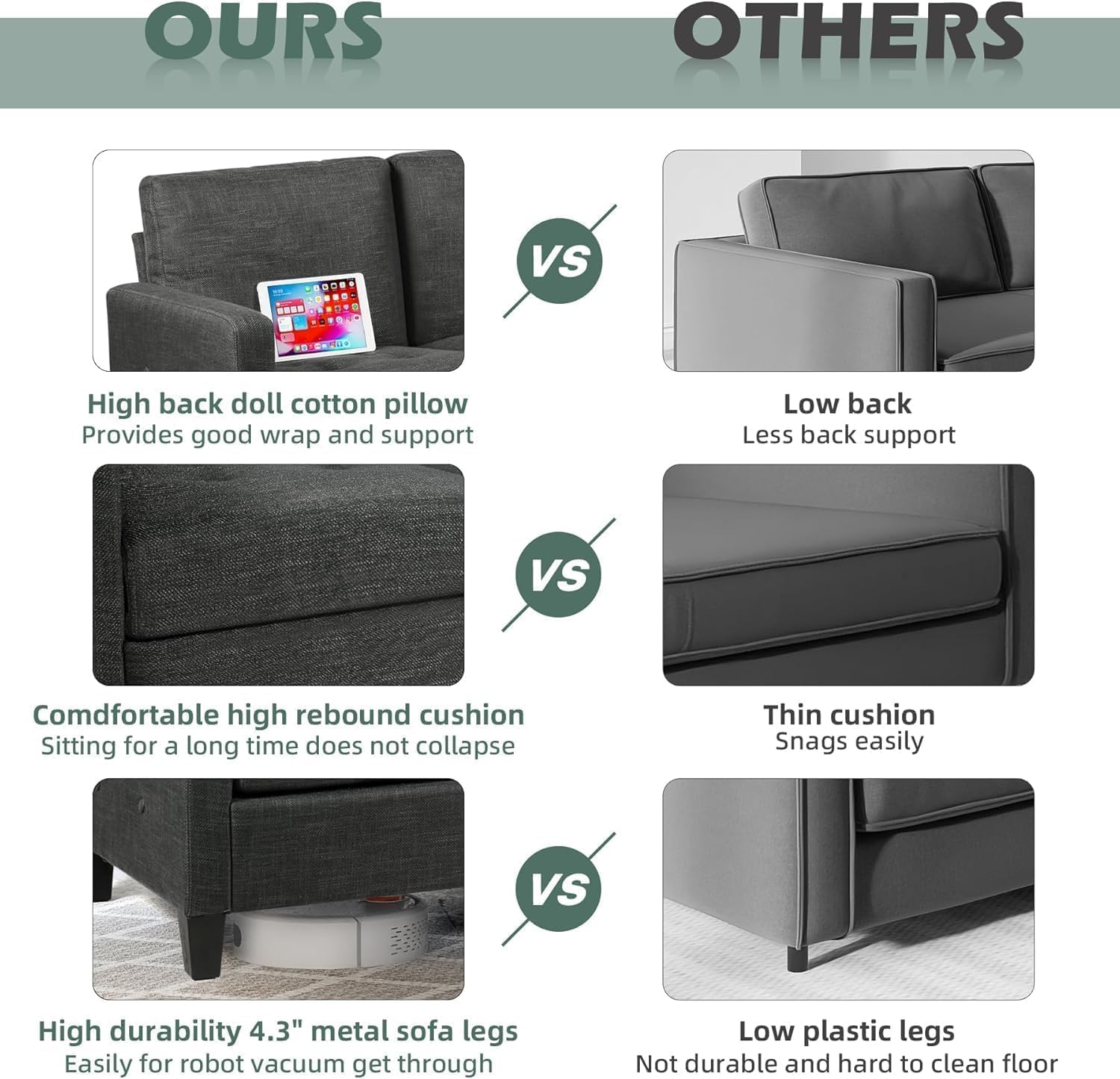 - 【High Comfy】We use fabric of cotton and linen, comfortable and breathable. The inside of the cushion is filled with highly elastic foam and the top is covered with soft doll cotton. U-shaped spring links are used between the solid wood frame at the seat bottom. The backrest has a slight tilt degree, which is fits the people body better. When you sit on this gray couch there is a feeling of being supported and wrapped.
