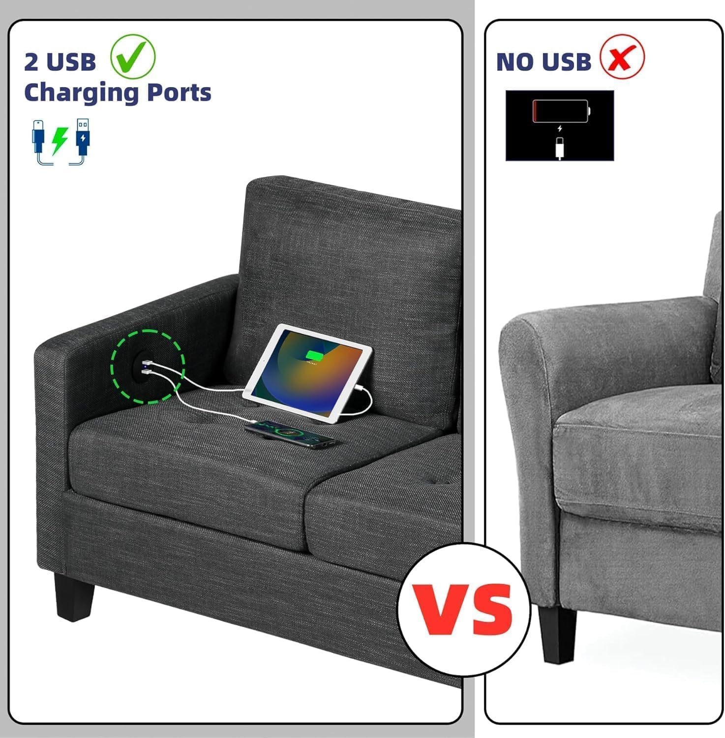 - 【New Design】We increased 2pcs USB charging ports on the one side of the armrest, which can provide long-term power so that you can play games and watch videos on it. Place it inside the armrest of the 2 seater sofa and it will not destroy the beauty of the whole loveseat sofa.